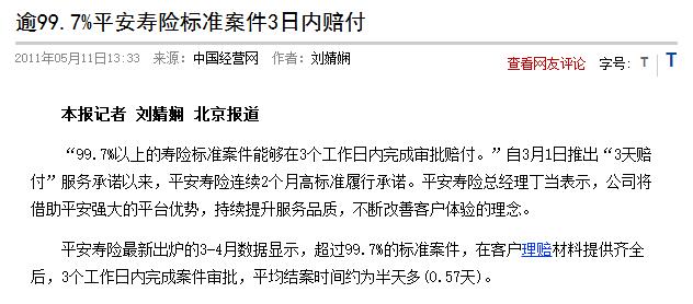 對于符合保險責(zé)任的非調(diào)查標(biāo)準(zhǔn)案件,平安人壽承諾在三日內(nèi)結(jié)案,充分保障客戶的利益,保證理賠處理時效和保險承諾的兌現(xiàn),提升了公司理賠服務(wù)水平。