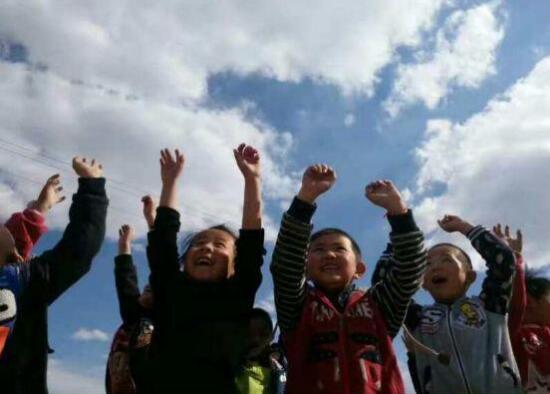 內(nèi)蒙古赤峰市敖漢旗貝子府鎮(zhèn)西荒小學(xué)的學(xué)生在陽光下歡呼雀躍