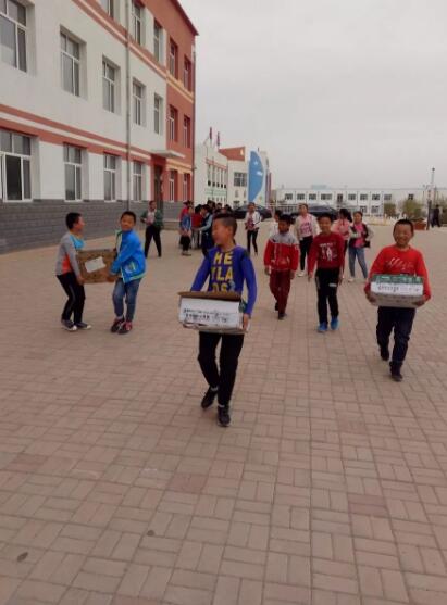 內(nèi)蒙古赤峰市林西縣統(tǒng)部寄宿制小學(xué)學(xué)生在搬書(shū)