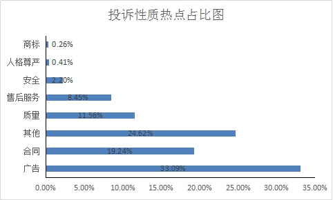 (二)從投訴性質上看,涉及廣告問題的投訴量占比超三成,涉及安全問題的投訴增幅最大。
