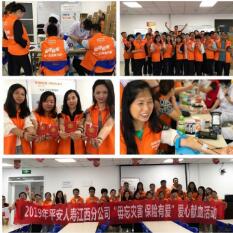 活動期間,分公司聯合江西省血液中心走進南昌本部各營業單位,同時全省各地市同步開展“毋忘災害 保險有愛”無償獻血活動,累計組織號召數百名內外勤員工參與,獻血量超60000CC。