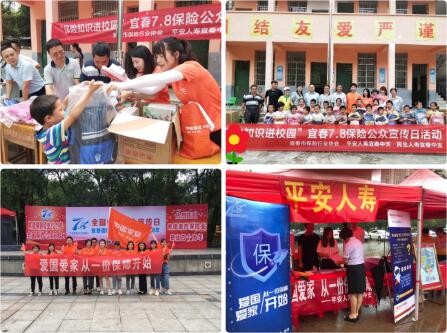 為普及保險知識,讓廣大人民群眾更加直接、客觀的認識保險行業的本質、價值及功能作用,“7·8全國保險公眾宣傳日”活動期間,平安人壽江西分公司在全省各三級機構、各網點全面開展豐富多彩的保險“五進入”活動,走進社區、農村、學校并設立展臺,通過發放保險知識宣傳手冊、張貼主題條幅等方式為客戶答疑解惑,共同推動保險公眾宣傳工作,不斷提高社會公眾保險意識,全方位詮釋“愛國愛家,從一份保障開始”這一主題。