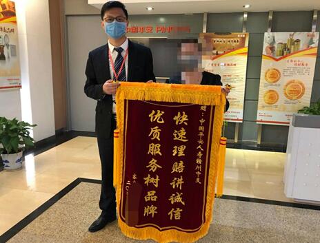 經審核,公司按條款約定賠付意外身故保險金133萬余元,客戶家屬對公司主動、快速、高效、簡單的理賠服務表示肯定,對公司在理賠過程中給予的幫助表示由衷感謝,特送上錦旗以彰顯對平安理賠的感激之情!