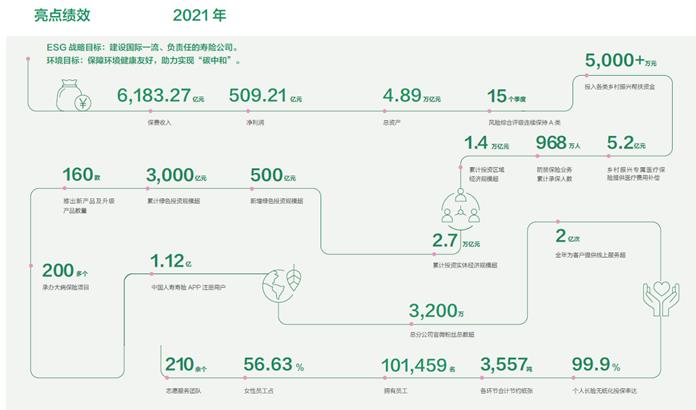 推進鄉村振興。堅持“以人民為中心”,中國人壽壽險公司積極統籌各方力量,立足主業優勢,筑牢防貧保障網,全面助推鄉村振興。報告顯示,2021年,該公司承接1000余個幫扶點的鄉村振興幫扶工作,投入幫扶資金5000多萬元;向內蒙古烏蘭察布察右后旗大六號鎮捐贈幫扶資金用于開展電子商務中心改造、玉米深加工等項目。立足主業優勢,為脫貧人口提供買得起、買得到、愿意買的保險產品與服務。截至2021年12月31日 ,在團體保險幫扶方面,公司防貧保險業務累計承保人數968萬人,累計提供了0.92萬億元的保障金額;在健康保險幫扶方面,大病保險業務當年為困難人群提供167萬人次26億元的醫療費用補償,鄉村振興專屬醫療保險為137萬人次提供醫療費用補償5.2億元。