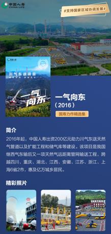 2016年起,公司出資200億元助力川氣東送天然氣管道以及擴能工程和儲氣庫等建設。該工程跨越四川、重慶、湖北、江西、安徽、江蘇、浙江、上海6省2市,管道全長2229千米,設計年輸氣能力120億立方米,是連接長江經濟帶沿線重要的天然氣長輸管線,惠及億萬城鄉居民。