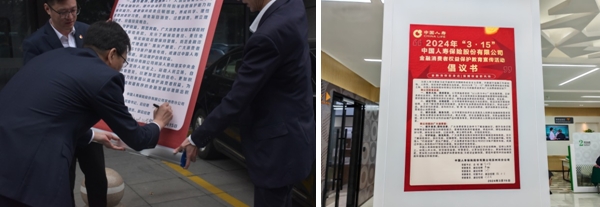 該公司各級機構高管人員積極響應號召,簽署金融消費者權益保護教育宣傳活動倡議書,并在柜面線下陳列,向廣大金融消費者鄭重承諾勇擔使命、合規經營、服務為民的決心,號召廣大金融消費者提升素養,理性消費,守護權益,防范風險。