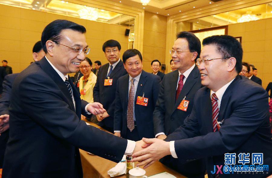 3月4日,中共中央政治局常委、國務院副總理李克強看望出席全國政協十二屆一次會議的經濟、農業界委員并參加聯組會。 新華社記者 姚大偉 攝