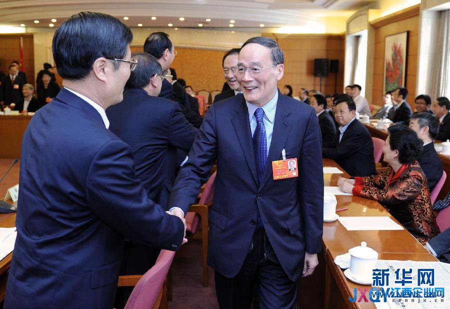 3月4日,中共中央政治局常委、中央紀委書記王岐山看望出席全國政協十二屆一次會議的農工黨、九三學社界委員并參加聯組會。 新華社記者 張鐸攝