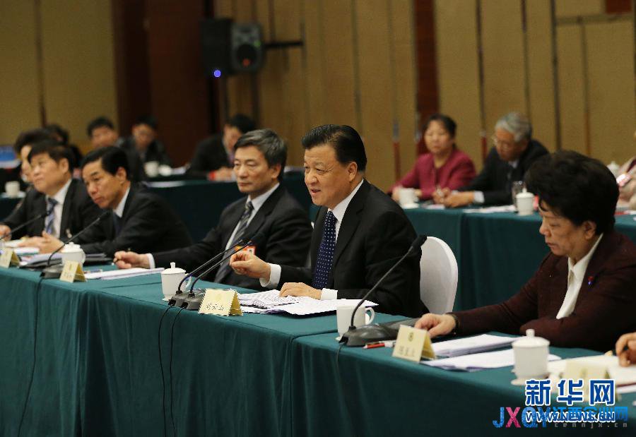3月4日,中共中央政治局常委、中央書記處書記劉云山看望出席全國政協十二屆一次會議的工會、共青團、青聯、婦聯界委員并參加聯組會。新華社記者 劉衛兵 攝