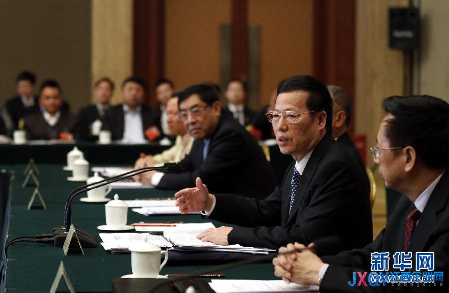 3月4日,中共中央政治局常委張高麗看望出席全國政協十二屆一次會議的民建、工商聯界委員并參加聯組會。 新華社記者 鞠鵬 攝