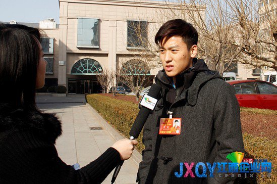全國人大代表、奧運冠軍董棟接受本網記者采訪。中國青年網記者劉洪俠攝