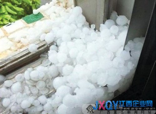 玉林訊3月20日晚上,容縣、陸川縣和北流市的一些鄉鎮突然下起了冰雹,整個過程大約持續了半個小時,大的像雞蛋,小的也有拇指大。冰雹把當地不少瓦房屋頂砸穿了,打傷了很多秧苗。