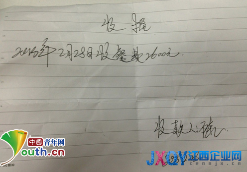 方某:是,我付了現(xiàn)金,因為不能刷卡。而且他們只給我寫了一張收據(jù),當時告訴我用收據(jù)可以換發(fā)票,但要等兩天的時間。