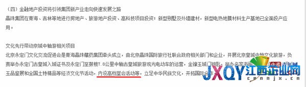 在某知名招聘網(wǎng)站上,中國青年網(wǎng)記者還發(fā)現(xiàn)了青海晶珠藏藥高新技術(shù)產(chǎn)業(yè)股份有限公司在招聘人員時的一段公司介紹文字:北京永定門文化交流促進會是青海晶珠藏藥集團牽頭成立,由北京晶珠國際旅行社聯(lián)合政府相關(guān)部門和企業(yè),開展北京皇城中軸文化旅游,負責舉辦永定門古皇城入城證書及永定門至鼓樓7.8公里中軸古皇城旅游觀光電動車的運營,金鑲玉城門鑰匙,舉辦名家書畫藝術(shù)展覽拍賣、昆侖玉品鑒展和全國土特精品等經(jīng)濟文化節(jié)活動,內(nèi)設(shè)高檔堂會活動等,立足中華民族文化,開拓國際合作。