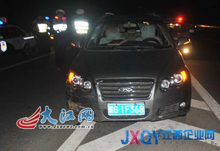 當日19時,江西省交警直屬二支隊第五大隊民警在九景高速湖口收費站設置檢查點,對進入高速公路的車輛逐一進行檢查是否存在酒駕、涉牌涉證等重點違法行為。19時45分,一輛牌號為贛G1F368的奇瑞小轎車在收費站崗領卡后,遲遲不肯前行。當民警示意該車靠邊停接受檢查時,該車駕駛員卻往左猛打方向盤,繼而加速前行,在逃逸過程中還險些撞上執勤民警。