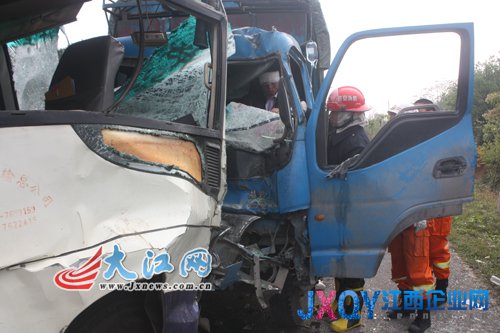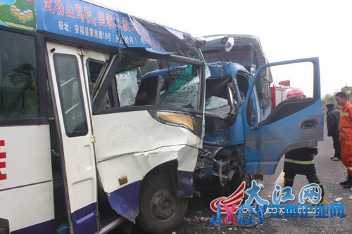 據現場的交警介紹,當時貨車由東向西往洋溪鎮方向行駛,公交車由洋溪開往安福縣城。由于早上起了霧,視線不是很好,貨車司機在超車后躲閃不及,與對面駛來的公交車撞在了一起。
