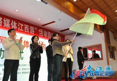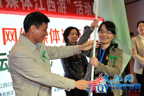 大江網(wǎng)訊 記者秦海峰報道:4月10日上午,“美麗星子•第五屆全國網(wǎng)絡媒體江西游”活動在星子縣正式啟動,江西日報社社長王暉為網(wǎng)絡媒體采訪團授旗。