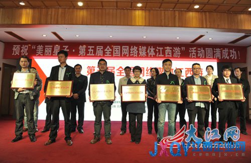 啟動儀式后,主辦方還為星子縣、廬山、景德鎮(zhèn)古俗民俗博覽區(qū)、鄱陽湖國家濕地公園、婺源篁嶺、湖光山舍、頤景園等7家單位授予了全國網(wǎng)絡媒體采風基地匾牌。