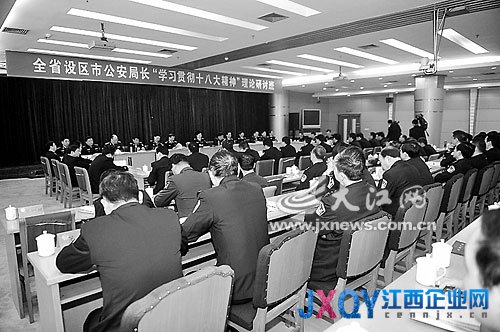 本報訊 劉根保 記者胡云蕓報道:4月7日上午,全省設區市公安局長“學習貫徹十八大精神”理論研討班正式開班,江西省公安廳黨委成員、全省11個設區市公安局長,以及廳直各單位正處級以上干部百余人,圍繞基層基礎、規范執法等9個事關公安工作全局和長遠發展的重點思考問題進行了研討、交流。江西省委常委、省委政法委書記、省公安廳廳長舒曉琴出席并講話。