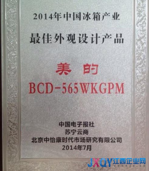 江西企業網訊 7月 2日下午,由中國電子報、蘇寧云商和北京中怡康時代市場研究有限公司聯合主辦,以“智無疆 鮮無界”為主題的2014年(第七屆)中國冰箱產業年會在京隆重舉行。會上,主辦機構和行業專家對2014年表現突出企業進行了頒獎。其中,美的冰箱榮獲了“2014年中國冰箱產業線上銷售領先獎”以及“2014年中國冰箱產業最佳外觀設計產品”兩項大獎,閃耀全場。