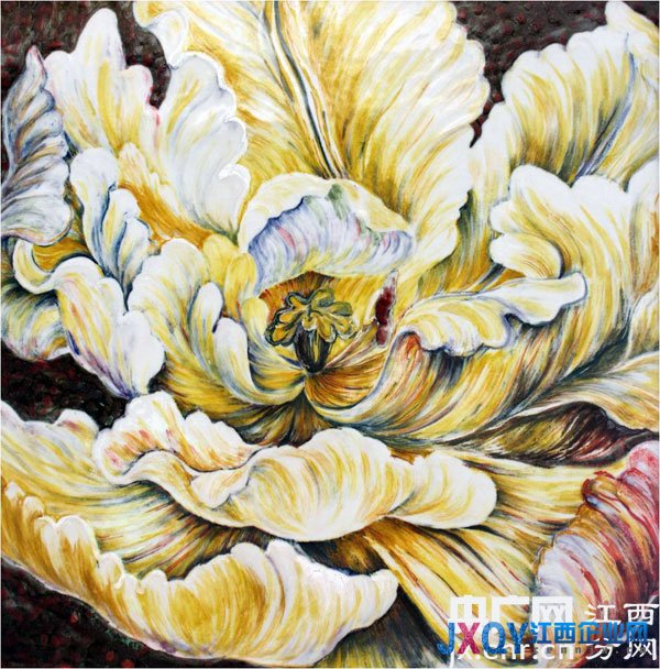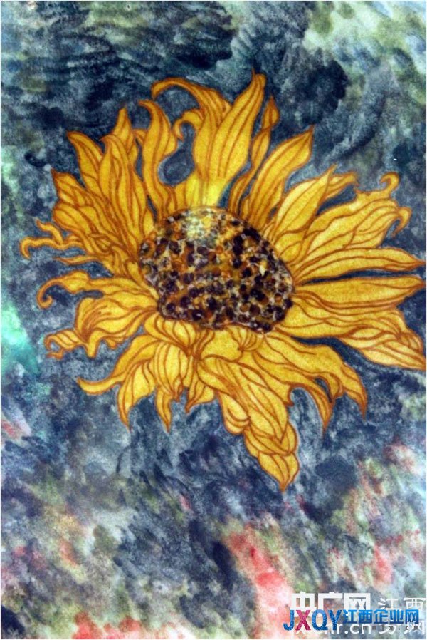蘇姍對“向日葵”題材的創作情有獨鐘。作為蘇姍的授業恩師,中國工藝美術大師李文躍教授認為蘇姍的“向日葵”作品既脫去了傳統各式陶瓷繪畫的羈絆,又不同于前人與他人那般運用陶瓷材料,將中國傳統繪畫的筆意與西方現代繪畫的構成觀念巧妙融合,營造出充盈著重形式上的唯美與媒介的現代生活親近感,表現出作者平靜心態上的精神向往。她的作品滲入了更多的感性追求與表現,作品在平和中透著睿智,為欣賞者營造出一幅幅溫馨而又雋永的藝術世界,從而給予觀者以耳目一新之感。