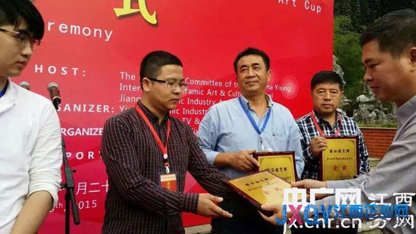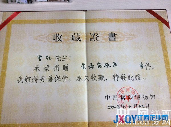 瓷板畫《賞瀑》榮獲中國宜興國際盆藝節金獎并被中國紫砂博物館收藏