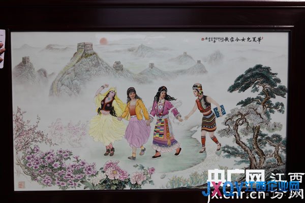 任瑞華釉上粉彩瓷板作品《華夏兒女合家歡》