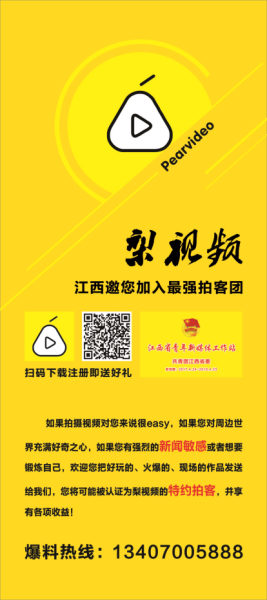 據了解,梨視頻江西專注老百姓身邊的故事,對人物類,故事類,奇聞趣事類的視頻或有監控錄像的事件都大量需求。另據了解,今年4月份,共青團江西省委授予梨視頻江西-江西省青年新媒體工作站。如果你也熱愛拍攝視頻,歡迎聯系投稿,一經采用,稿費從優。 聯系電話:13407005888 曾偉
