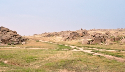 (圖:巖石裸露干旱少雨的烏蘭哈達嘎查)
