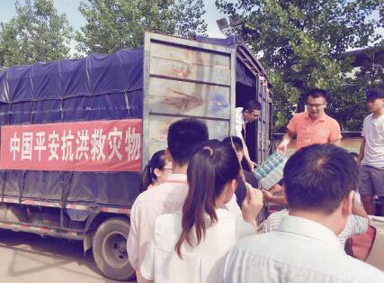在災區的第一現場段煥強經理帶領平安員工抗洪救災,有序發放救災物資。走村進戶慰問受災群眾,將救援物資及時送受災群眾的手中,與平安員工堅守在救災第一線。