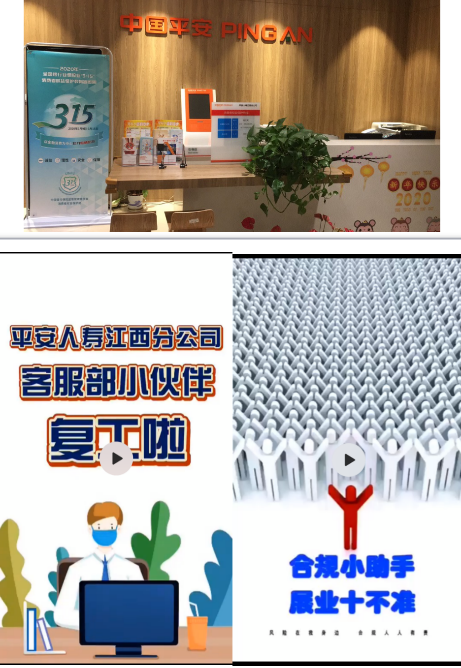 結合當前疫情防控工作要求,平安人壽江西分公司充分利用微信公眾號、短視頻等資源,開展多渠道,多角度的線上教育宣傳工作,同時,為加強宣傳力度,分公司各中支機構客服中心、營業網點已統一張貼布置主題宣傳海報、易拉寶等物料,并在自有電子屏及廣告機上播放電子海報及標語。后續,平安人壽江西分公司將結合當下疫情防控熱點,經典案例,針對不同領域、不同人群開展針對性的保險消費風險提示,不斷提升消費者風險防控意識和自我保護能力。