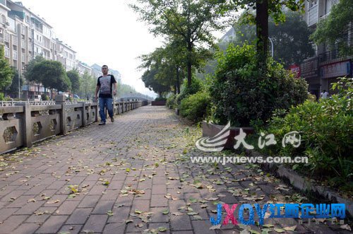鐘女士住在萍鄉(xiāng)市蘇州街旁邊的一個小區(qū)。這條長約2公里的街道中間有一條河,河道兩旁栽種著近百株銀杏和其他樹種。前兩天,鐘女士沿著河畔散步時看到,部分銀杏樹的葉子黃了,而且一陣風(fēng)吹過,樹上的葉子就會呼啦呼啦地飄落。只要一天不打掃,河畔兩旁的人行道就會被樹葉覆蓋。鐘女士很擔(dān)憂:“這種嚴(yán)重的落葉現(xiàn)象到底是什么原因,是環(huán)境不好,還是這些銀杏樹生病了?”