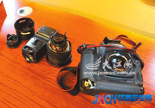 當梁振堂從車前走到車尾拍攝時,車里突然沖出身著黃色、綠色衣服的兩名男子,他們氣勢洶洶地喊道:“拍什么!把照片刪掉!”梁振堂說明身份和來意。不料綠衣服男子威脅道:“明天你出現在江西日報社門口,我就打死你!”說罷,黃衣男子按住梁振堂的左手臂,綠衣男子一把奪走相機,當著眾多購房者的面狠狠將相機摔在地上,價值6萬多元的相機瞬間四分五裂。