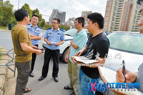 據梁振堂介紹,當時他走近售樓處,發現售樓處大門緊閉,一輛黑色北京現代轎車停在大門正中,上百名購房者圍著小車等待叫號,一名身穿聯泰工作服的保安則站在轎車天窗里發購房號。梁振堂拿起相機拍照采訪,一名身著白色衣服的中年男子上前質問:“拍什么?不要拍!”梁振堂解釋,自己是江西日報社記者,看到賣房場面火爆,特地來采訪。