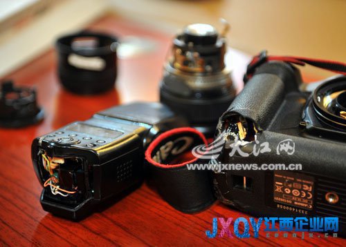當梁振堂從車前走到車尾拍攝時,車里突然沖出身著黃色、綠色衣服的兩名男子,他們氣勢洶洶地喊道:拍什么!把照片刪掉!梁振堂說明身份和來意。不料綠衣服男子威脅道:“明天你出現在江西日報社門口,我就打死你!”說罷,黃衣男子按住梁振堂的左手臂,綠衣男子一把奪走相機,當著眾多購房者的面狠狠將相機摔在地上,價值6萬多元的相機瞬間四分五裂。