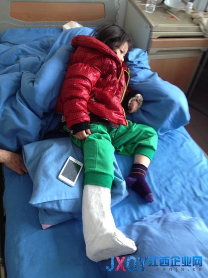 當記者在江西樂平市第二人民醫院見到六歲女孩小穎時,她的右腿已經被打上了厚厚石膏,不能下地行走,醫院的病房內幾乎人人都在討論著小穎被醫生做錯手術的事。小穎的母親劉雪梅告訴記者,孩子剛出生時左腿就有些問題,父母更是帶她去上海做過手術。“開了刀之后大概過了幾個月就會走路了,現在走路就是左腿有點拖動。”
