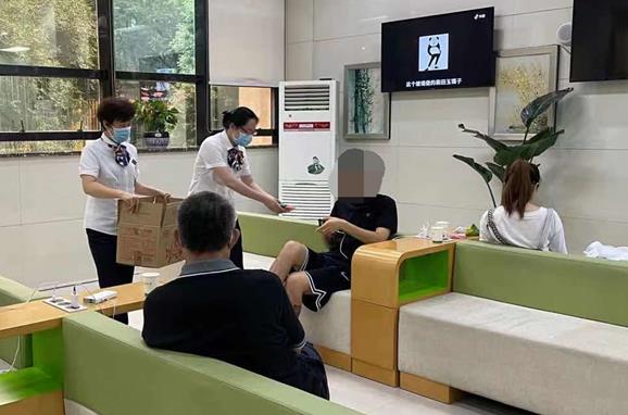 圖:鄭州分公司豐產路柜面工作人員為群眾提供食品