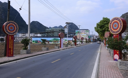 穿村而過的鄉間公路,兩排具有壯族文化特色的銅鼓、村屯標識牌和文化宣傳欄,沿街的居民樓房墻面,一幅幅彩繪通俗易懂、生動有趣……壯鄉兒女以丹青筆墨,深情、藝術地描繪了“紅色故里”在譜寫中國式現代化廣西篇章中所取得的新變化新成就。